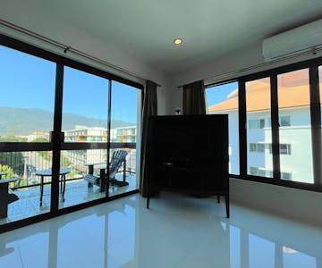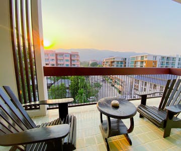 The Super Deluxe Room offers 65 square meters of space with a king-size bed and a separate dining area, making it perfect for guests who want more room. Enjoy stunning views of Doi Suthep from your private balcony. The room includes a work desk, free Wi-Fi, air conditioning, a smart TV, and a microwave.